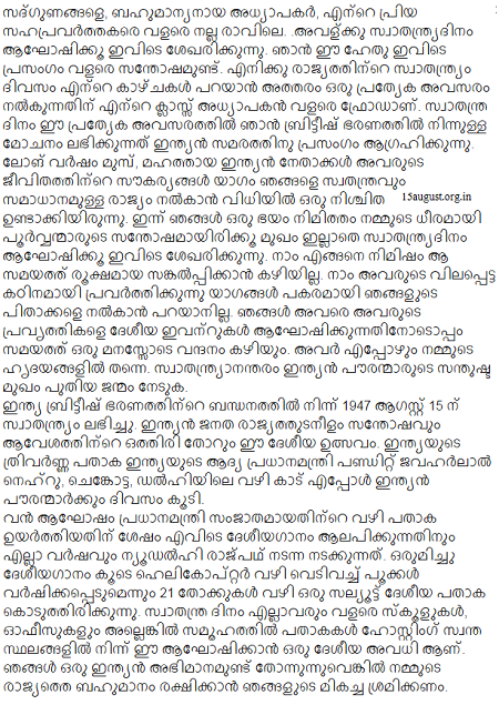 Festival 2016 Independence Day Speech 2016 In Malayalam Language
