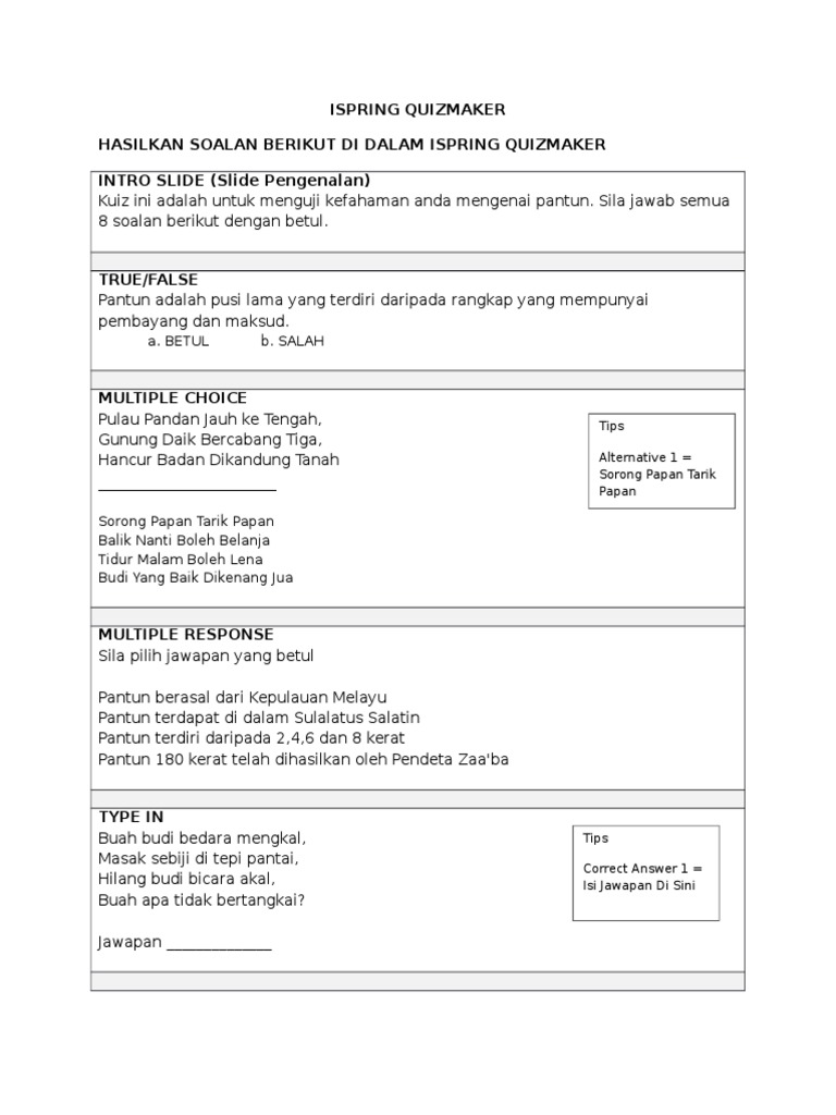 Soalan Kuiz Pantun