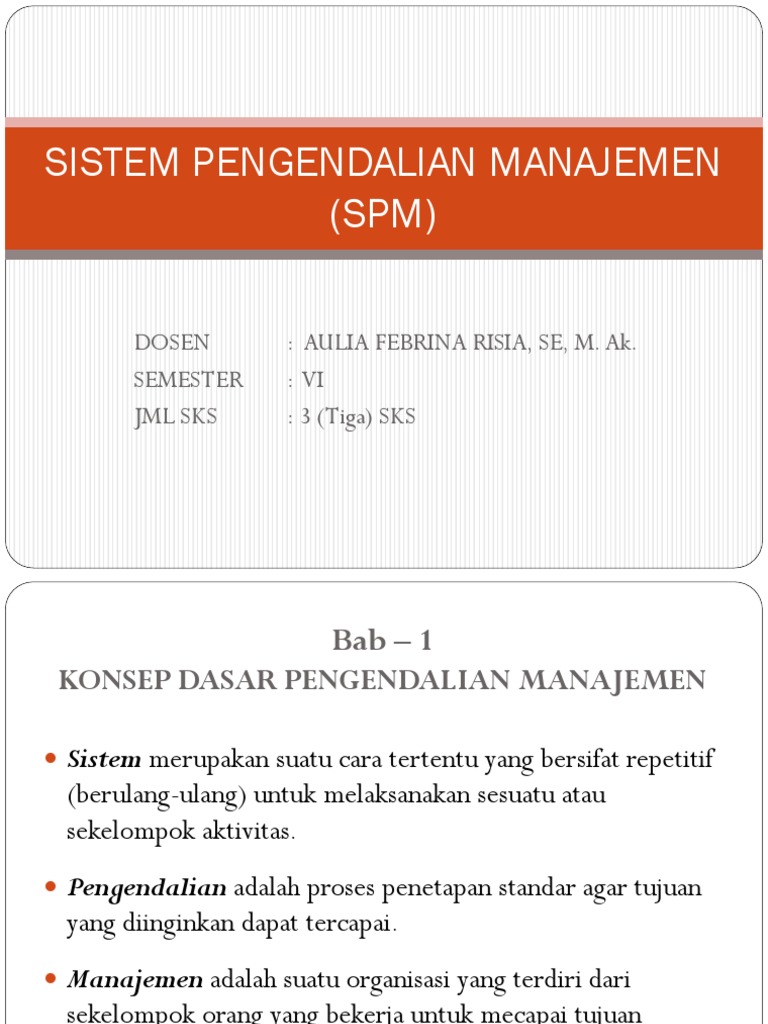 Sistem Pengendalian Manajemen Spm Dosen Aulia Febrina Risia Se M Ak Semester Vi Jml Sks 3 Tiga Sks
