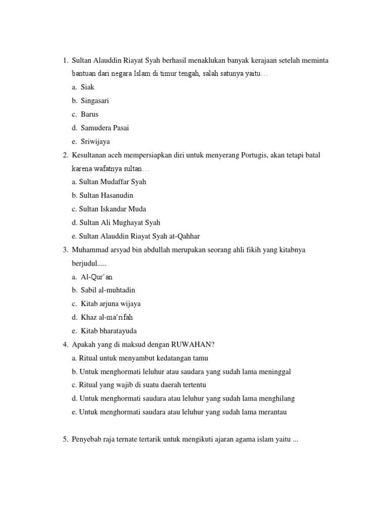 Soal Sejarah Kerajaan Islam Di Indonesia Dan Kunci Jawaban Muttaqin Id