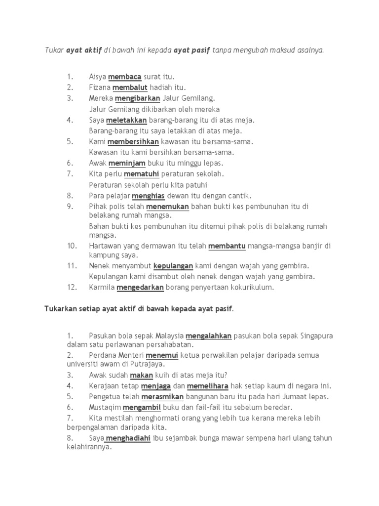 Ayat Aktif Dan Pasif Pdf Document